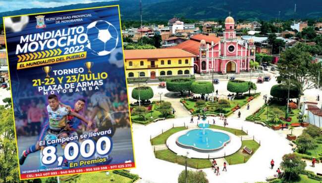El evento denominado “Mundialito Moyocho” es anunciado y promocionado en el portal web de la municipalidad moyobambina, en el flyer que promociona el evento se puede apreciar el logo oficial de municipalidad, las fechas del campeonato 21, 22 y 23 de Julio, el monto del premio para el equipo campeón del denominado “mundialito del pueblo”, las fechas que coinciden con el aniversario de la fundación de Moyobamba.
