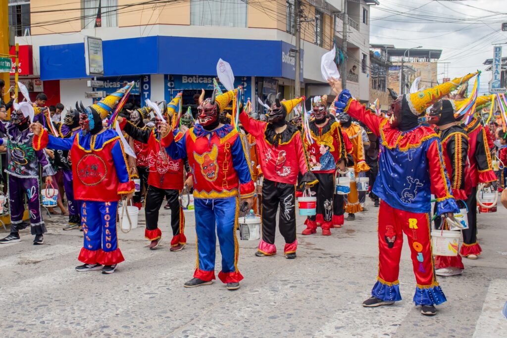 Uno de los personajes más esperados de la festividad es el Ño Carnavalón, figura central que recorre los barrios históricos acompañado por diablos danzantes, pandillas y bombos que marcan el pulso de la celebración. Las calles se llenan de comparsas, mientras las reinas del carnaval deslumbran en desfiles que combinan elegancia, tradición y orgullo local. Barrios emblemáticos como QuinapataConsuelo y Cascayunga se convierten en escenarios donde lo religioso y lo profano conviven, bajo la bendición simbólica del Santo Cristo de Bagazán.