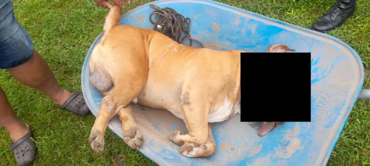 Un individuo indeseable ha colgado a un perro, lo ha golpeado y le ha introducido un palo por el recto, ocasionando graves daños físicos y la consecuente muerte del animal.