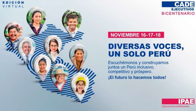 Desde IPAE Asociación Empresarial, saludan la presencia de las más altas autoridades en CADE Ejecutivos -cuyo lema esta edición es “DIVERSAS VOCES, UN SOLO PERÚ”- y hacen un llamado a trabajar de manera conjunta para enrumbarnos en un proyecto de país que impulse la calidad en la provisión de servicios de educación y salud, y genere igualdad de oportunidades para todos los peruanos.