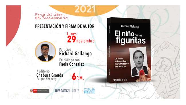 ste lunes 29 de noviembre a las 6 pm, en el Parque Kennedy de Miraflores, el escritor y director publicitario, Richard Gallango, presenta en la I Feria del Libro del Bicentenario, su libro «El niño de las figuritas”: un relato íntimo sobre Martín Vizcarra y su entorno.