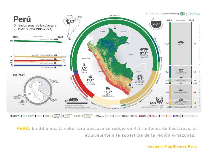 Sobre nuestro país señala, “en menos de 40 años, el crecimiento de la minería y de la actividad agropecuaria, que incluye a monocultivos como la palma aceitera, han causado la pérdida de 2,8 millones de hectáreas de vegetación solo en el bosque amazónico. Los pueblos indígenas están entre los grupos más afectados por este avance”