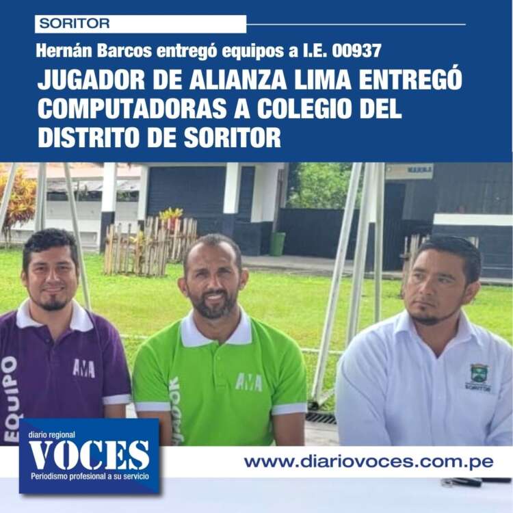 Hernán Barcos, jugador referente del Club Alianza Lima, estuvo en el distrito de Soritor, para realizar la donación de computadoras a la apertura del taller de arte para alumnos de la Institución Educativa 00937 David Bocanegra Vásquez; desprendimiento que es reconocido y valorado por la población y los padres de familia, viniendo de un jugador extranjero que ha demostrado un vez más su solidaridad con las personas humildes y en este caso en bien de nuestros estudiantes, señaló, Herminio Montenegro, alcalde de Soritor.