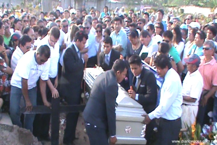 Terminada la ceremonia eclesiástica los restos del también empresario imprentero salieron hacia el lugar que se convirtió en su última morada, el cementerio general del distrito de Morales, donde sus familiares sobre todo su esposa e hijos hicieron escenas de profundo dolor. Su padre don Manuel Aquino Sandoval, fue quien en representación de la familia, dio las palabras de despida.