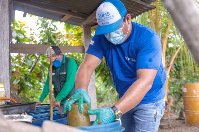La Comisión Nacional para el Desarrollo y Vida sin Droga (Devida) entregó 570 baldes con melaza de caña a 1706 familias dedicadas a la producción de cacao en los distritos de Pólvora y Campanilla (San Martín), utilizada para elaborar biofertilizantes que se aplicarán en 2651 hectáreas de cultivos.