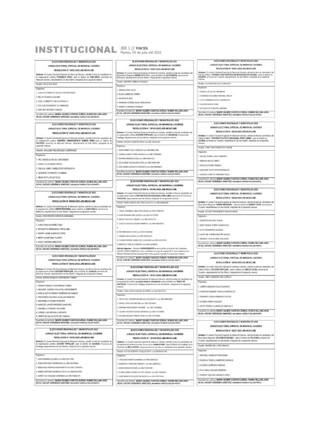 Elecciones Municipales Jurado Electoral Especial de Mariscal Caceres