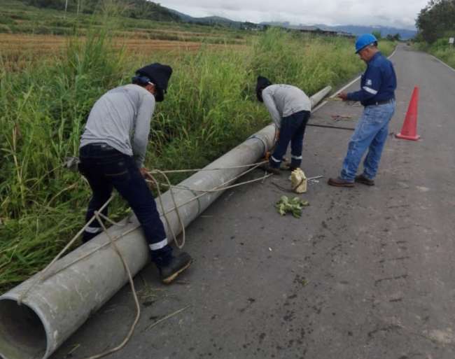 Ante este hecho personal de contingencia de la empresa Electro Oriente liderado por el jefe de Unidad Lic. Berlin Gaviria Meléndez, unieron sus esfuerzos para reponer el servicio eléctrico, realizando el cambio de la estructura por un poste de fibra de vidrio, que sostienen la línea de media tensión que llevan electricidad a poblados de los distritos del Alto y Bajo Biavo.