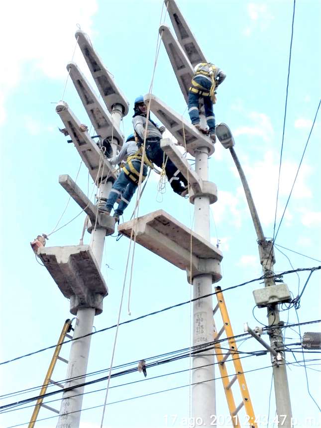 En San José de Sisa se ejecutan maniobras en la red en el sector 20 de mayo, izados de dos postes de 15 metros, para una nueva subestación de distribución eléctrica, para mejorar la calidad de tensión en dicho sector. Asimismo, se realizará el mantenimiento del Recloser en la localidad de Consuelo.