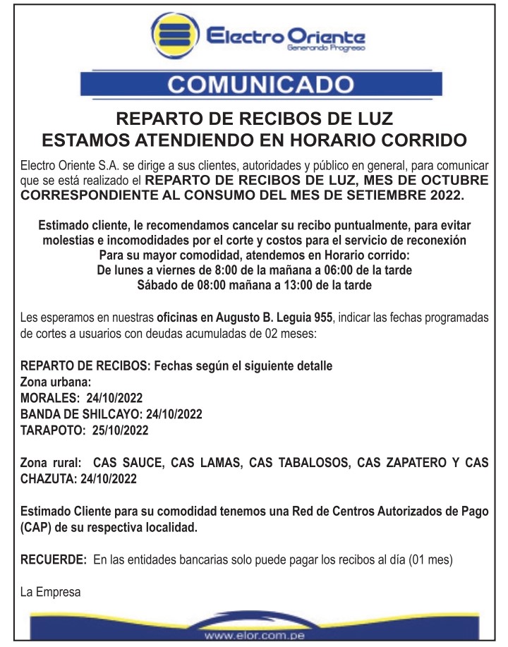 Electro Oriente: Comunicado