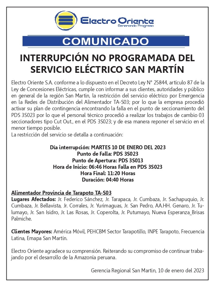 Electro Oriente: Comunicado