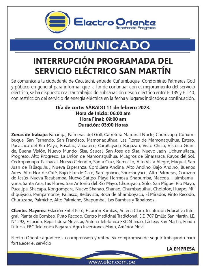 Electro Oriente: Comunicado