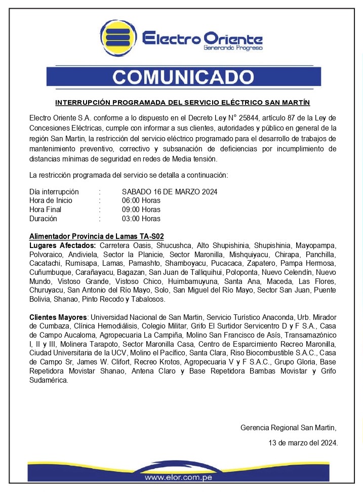 Electro Oriente: Comunicado