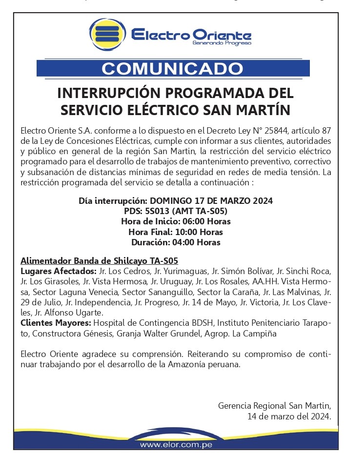 PrevAnteriorInterrupción Programada del Servicio eléctrico San Martín