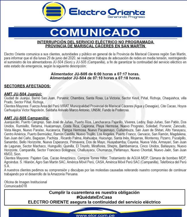 Electro Oriente: Comunicado. Mariscal Cáceres
