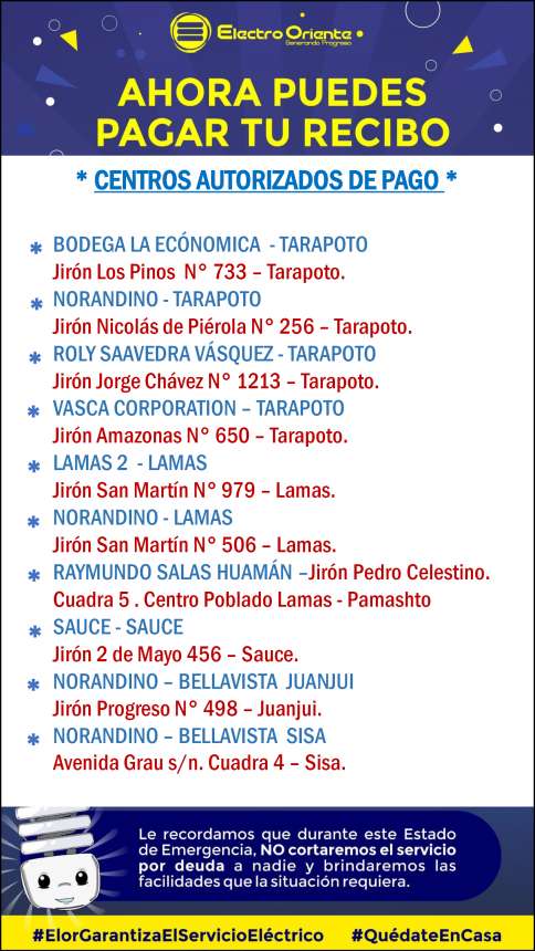 Durante la Emergencia Nacional, tenemos el compromiso de mantener operativo el servicio eléctrico, en hospitales, centros de salud, cadena productiva de alimentos, fuerzas armadas y policiales, bomberos, viviendas y vías públicas.