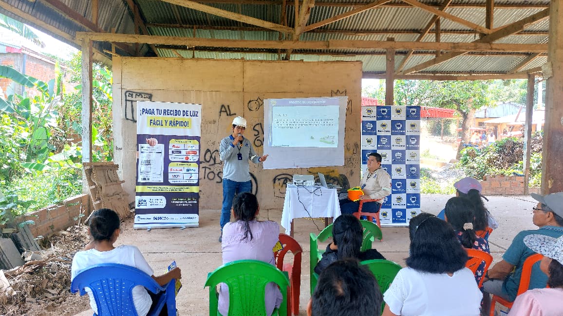 El pasado 29 de agosto de 2025, colaboradores de la Unidad de Negocios Yurimaguas de Electro Oriente realizaron una charla de orientación y sensibilización en el Asentamiento Humano Santa Rosa, donde brindaron información sobre la prevención de riesgos eléctricos y ofrecieron orientación para que los usuarios comprendan mejor los conceptos que se facturan en el recibo de luz.