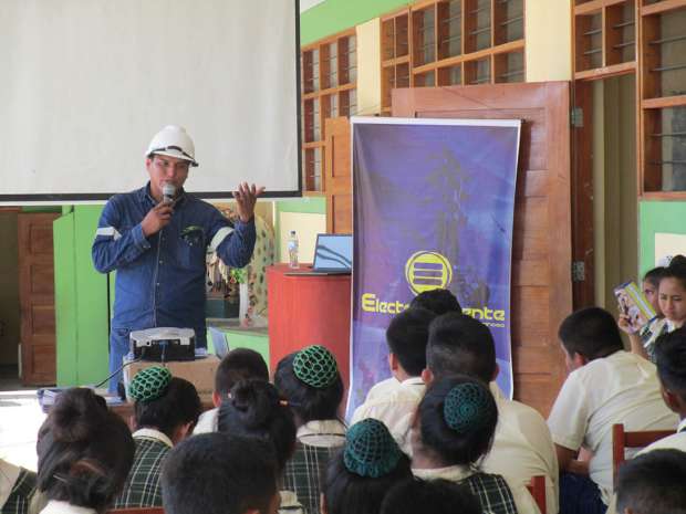 Bellavista. Con el propósito de prevenir riesgos y consolidar una cultura de seguridad en estudiantes del nivel secundario, personal especializado de Electro Oriente de la Unidad de Negocio Bellavista, realizó ayer en el distrito de Bajo Biavo Nuevo Lima, una capacitación a más de 279 alumnos del nivel secundario de la Institución Educativa 0084 Andrés Avelino Cáceres en temas de Seguridad, Riesgo Eléctrico, Uso Eficiente de la Energía Eléctrica y cuidado del Medio Ambiente.