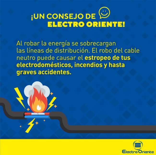 lectro Oriente S.A. aconseja a la ciudadanía a poner en práctica sencillas recomendaciones para evitar cortocircuitos que a su vez dan origen a incendios que ocasionan pérdidas materiales, sino que también ponen en riesgo la vida de las personas y hasta causar acidentes fatales.