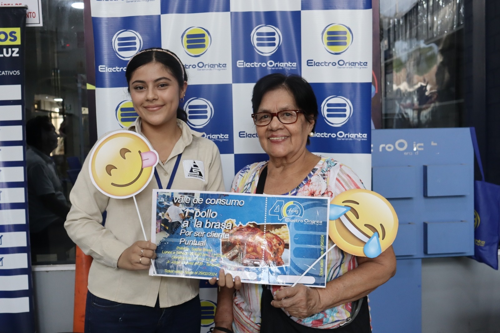 Con la intención de fomentar la cultura de la puntualidad en los pagos de los recibos de consumo de energía eléctrica, Electro Oriente S.A. realiza la campaña: “Clientes Puntuales” y premia a sus usuarios que estén al día en sus pagos con el sorteo de 80 vales de consumo, válidos por un pollo a la brasa.