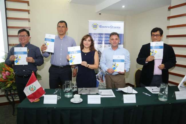 Ante la presencia de autoridades civiles, de las Fuerzas Armadas, del Tribunal Militar Policial del Oriente, representantes de instituciones nacionales, así como funcionarios de Electro Oriente, el día lunes 28 de octubre de 2019 en la ciudad de Iquitos, el presidente de Directorio de la empresa Jaime O. Salomón, presentó el “PLAN INSTITUCIONAL DE INTEGRIDAD Y LUCHA CONTRA LA CORRUPCIÓN 2019 – 2021”, documento que recoge el compromiso de la organización, de todos sus trabajadores, funcionarios y directores, que aúnan esfuerzos para consolidar y hacer sostenible una cultura de trabajo íntegra y transparente.