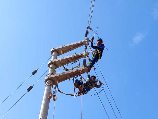 Aprovechando el corte programado del servicio eléctrico programado, personal del área de Distribución de Electro Oriente – Bellavista, ejecutó múltiples trabajos de mantenimiento en las redes de media tensión, en la localidad de Carhuapoma; destacando la reubicación de línea primaria de 22.9 kV alimentador BE-S05 (Sisa).