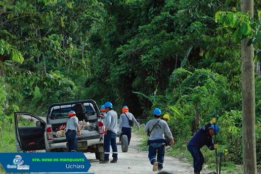 En la misma línea de acción, se trabaja el proyecto “Electrificación rural con redes primarias y secundarias y conexiones domiciliarias en el caserío de Santa Rosa de Manquiute en el Distrito de Uchiza”; la ejecución de esta obra permitirá beneficiar a más de 200 usuarios. El proyecto tiene un avance de 70% de suministro de materiales y montaje electromecánico. De igual forma concluyo la Electrificación rural con redes primarias y secundarias y conexiones domiciliarias en el caserío de Pampa Hermosa Puente Camote en el Distrito de Uchiza, para beneficio de 20 usuarios.