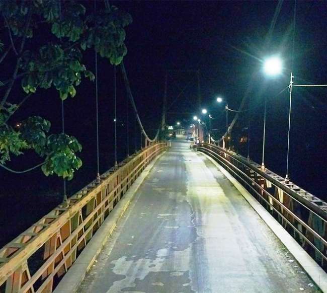 El puente sobre el Río Huallaga en Centro Poblado de Puerto Pizana, luce también una moderna iluminación LED buscando mejorar la calidad de vida, generar seguridad en la zona, contribuyendo con el bienestar social de los usuarios y población en general