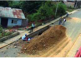 Son tres las averturas, que EMAPA realizó en el jirón Recreo para reparar las tuberias, y en una de ellas, frente al colegio Cleofé Arévalo del Aguila, hicieron el hueco, parcharon y ahora nuevamente se hundió el terreno.