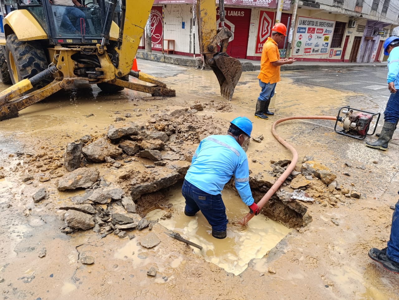 En horas de la mañana del domingo 9 de febrero del presente año, se reportó la fuga de agua en la red de distribución matriz (tubería de 110 mm de asbesto cemento) en la intersección de los jirones San Martín y Alegría Arias de Morey de la ciudad de Tarapoto.