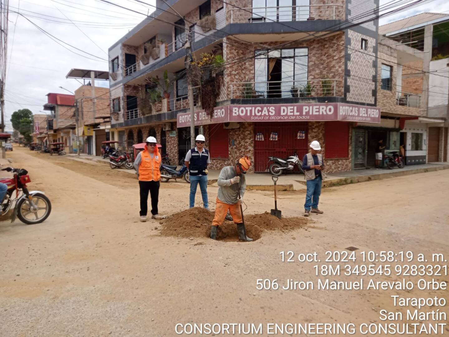 Ante este reporte sobre la emisión de olores de desagüe y escurrimiento de aguas servidas por las cunetas existentes, el sábado 12 de octubre personal de la contratista de la Obra: «MEJORAMIENTO DE LOS SERVICIOS DE AGUA POTABLE Y DE ALCANTARILLADO SANITARIO EN LAS PRINCIPALES VIAS DE ACCESO AL SECTOR PARTIDO ALTO Y LA HOYADA, DISTRITO DE TARAPOTO-SAN MARTIN-SAN MARTIN», junto al personal de la Supervisión y de la Gerencia de Ingeniería, Proyectos y Obras de Emapa San Martín, realizaron la verificación correspondiente, indicando como conclusión, que el forado encontrando en el buzón de desagüe se ubica en un tramo no intervenido y que esta mala práctica viene desde hace mucho tiempo, es decir desde que se ejecutó los trabajos del colector Perú. Por lo que en coordinación con el residente de obra se procedió a sellar este forado. Así mismo, a partir de la fecha se realizará una evolución de todo el tramo a fin de detectar posibles forados y tomar las acciones correctivas.