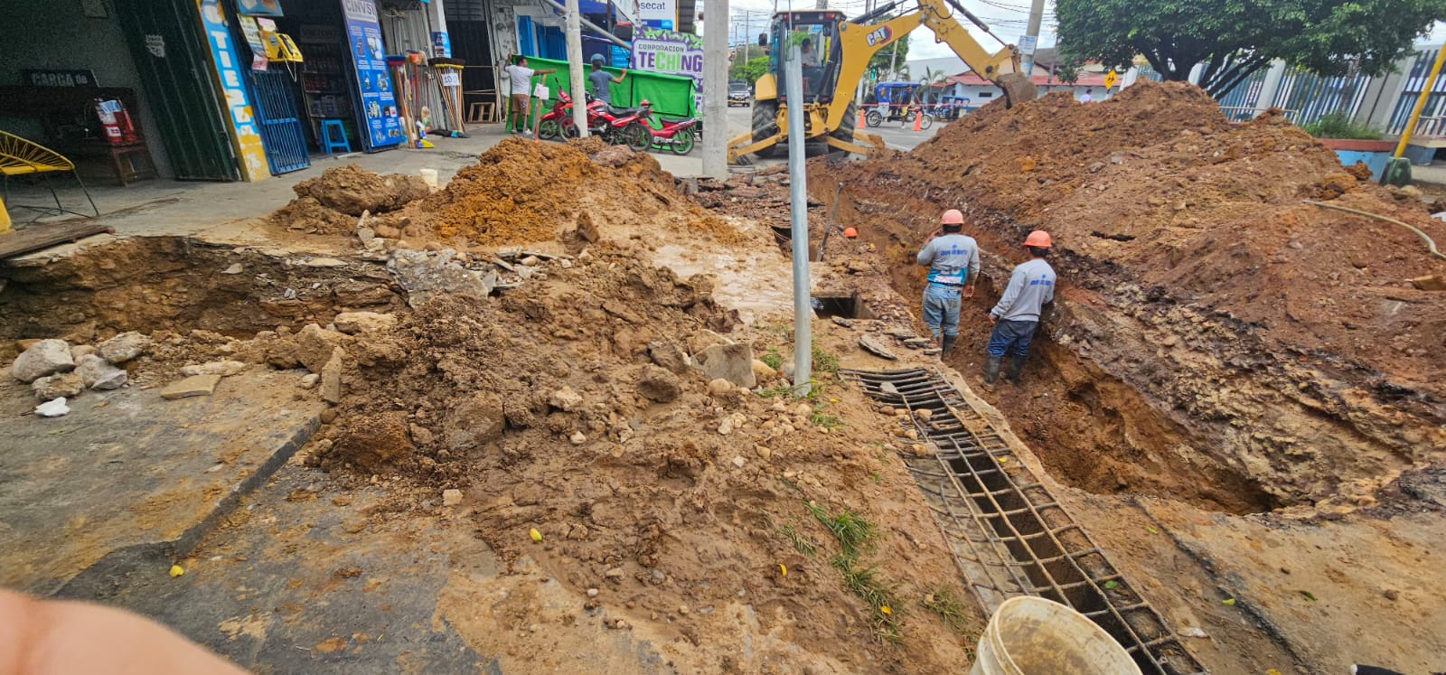 Como parte de su reparación, siendo una tubería de 6 pulgadas de asbesto cemento, se procedió al cambio de la tubería en un aproximado de 10 metros con una adaptación a tubería PVC de 160 mm.