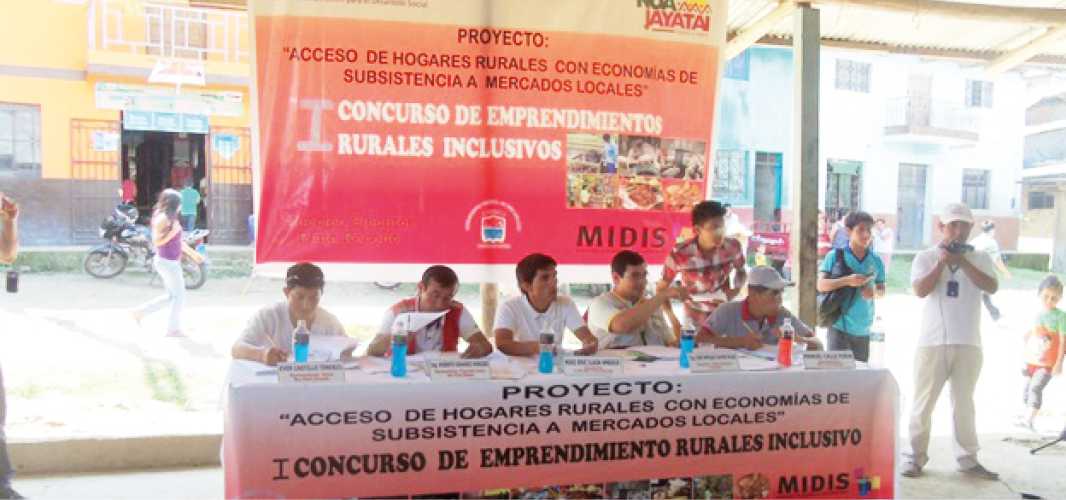El pasado domingo 7 del mes en curso se llevó a cabo el primer concurso de Emprendimientos Rurales inclusivos pertenecientes al Proyecto Acceso a Hogares Rurales con Economías de Subsistencia a Mercados Locales – NOA JAYATAI, del Núcleo Ejecutor Central (NEC) correspondiente al distrito de Pinto Recodo, a cargo del coordinador técnico, Ing. Aurelio Panduro Saavedra, de FONCODES.