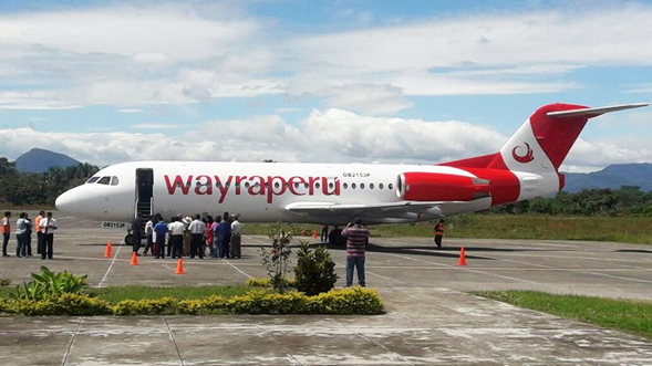 Rioja. Ayer, la empresa aérea comercial Wayra Perú, realizó su vuelo inaugural al aeropuerto de la ciudad de Rioja Juan Simons Vela, para que, en junio inicie su ruta desde esa ciudad hacia Lima.