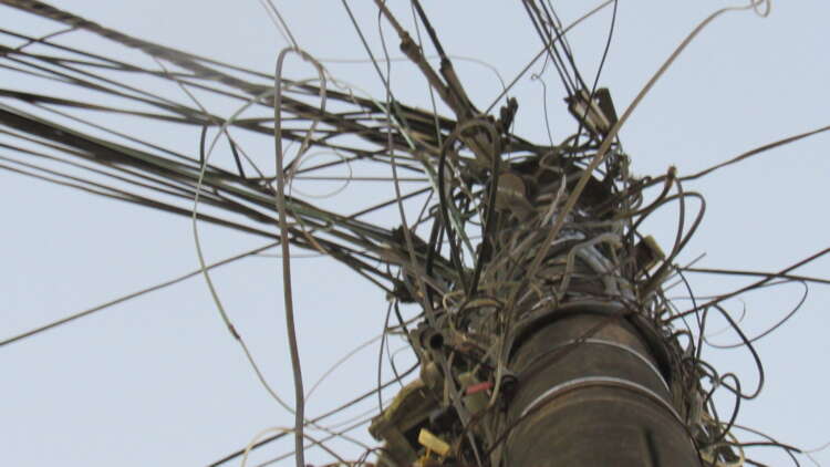 Maraña de cables de telefonía en las calles