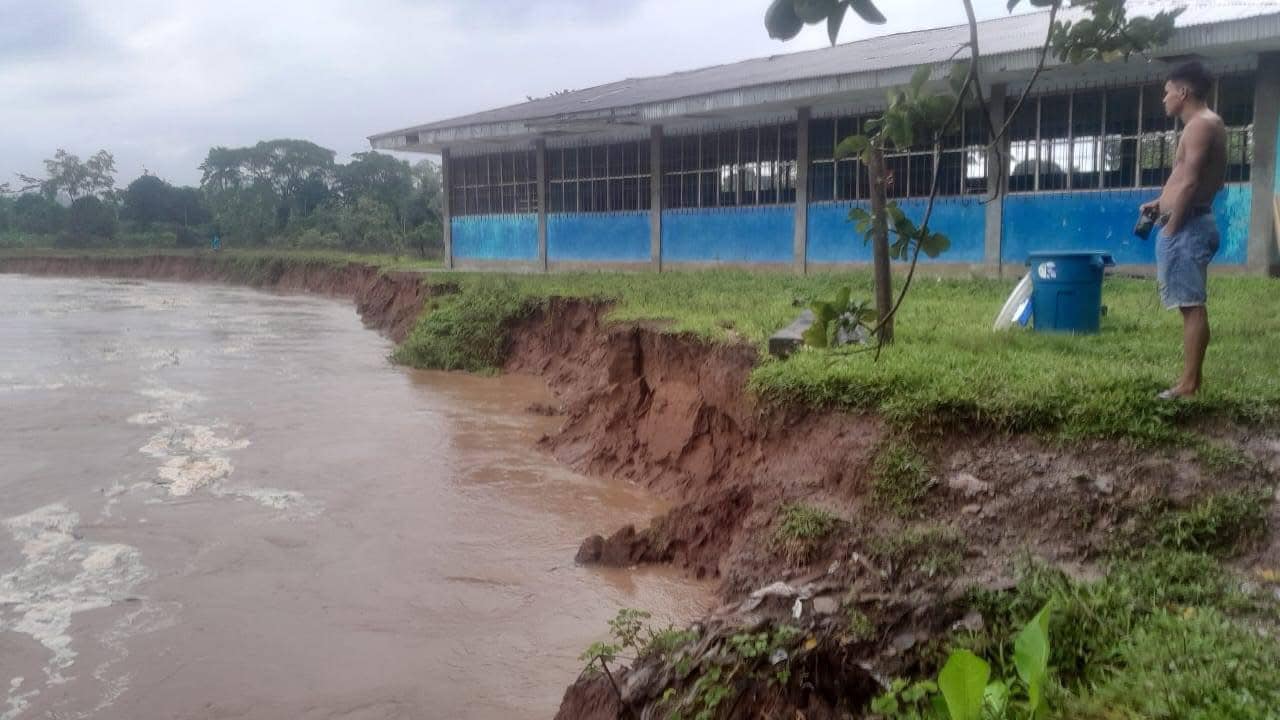 El local de la I.E. 62416 de la comunidad nativa Pucalpillo en el Alto Paranapura, distrito de Balsapuerto, está en riesgo de colapsar debido a las intensas lluvias en las cabeceras de cuenca, que causan el desborde del río, y la erosión de la superficie está por llegar hasta el local escolar amenazando con desaparecerlo.