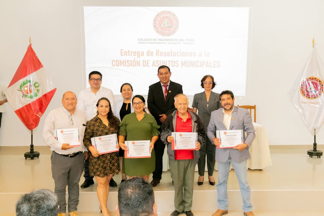 En una ceremonia protocolar realizada el sábado 18 de enero de 2025, se llevó a cabo el Acto de Entrega de Resoluciones a la Comisión de Asuntos Municipales del CIP CDSM – Tarapoto.