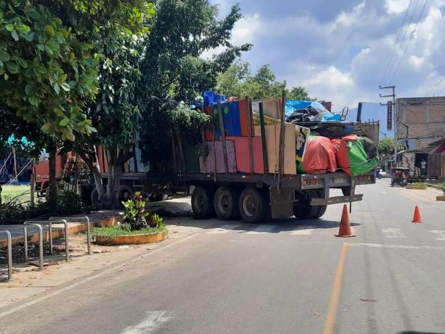 Un camión cargado de juegos mecánicos afectó ayer dos árboles que fueron sembrados en los alrededores del campo deportivo del Shuta Boy en el barrio Huayco de Tarapoto. Ante este hecho los vecinos de la zona reaccionaron y exigieron la presencia de la Policía Nacional para sancionar a los responsables, ya que para sacar al pesado vehículo tuvieron que talar dos troncos de ficus.