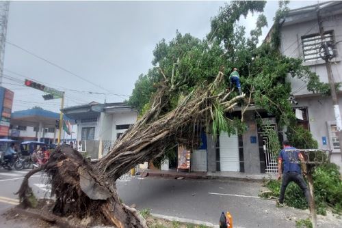 Similar situación ocurrió en la tercera cuadra de la calle Távara, en el distrito de Iquitos, donde un árbol de aproximadamente 40 metros de altura cayó sobre una vivienda, dañando techos y concreto. No se reportaron heridos.