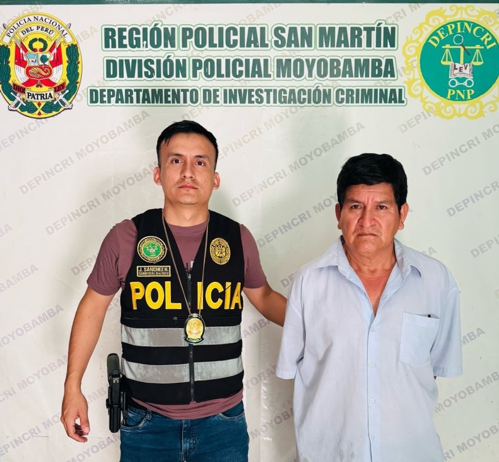 La detención fue ejecutada por personal de la DEPINCRI Moyobamba el 12 de julio de 2025, a las 16:50 horas, en las inmediaciones del domicilio del investigado.