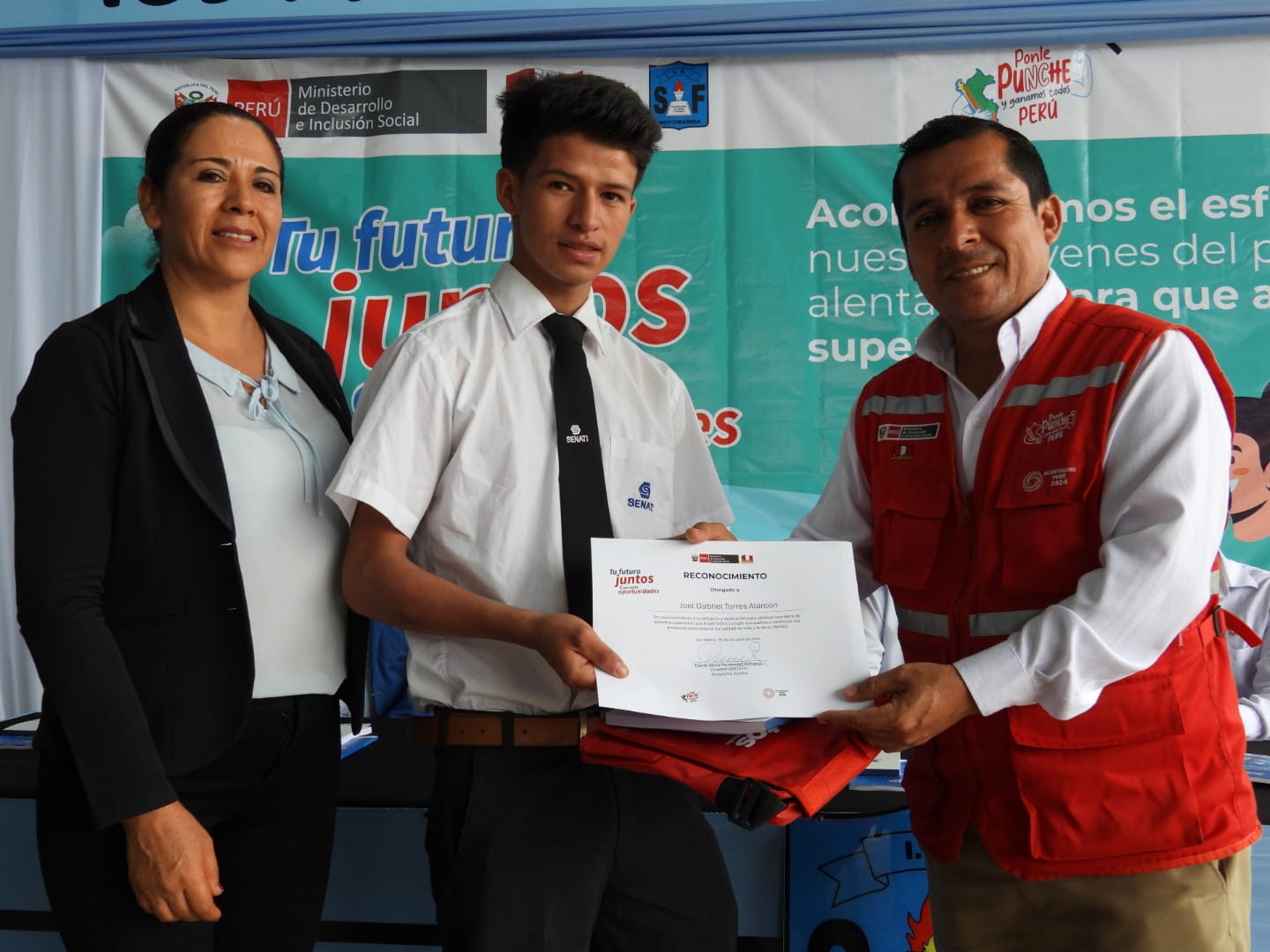 Durante la jornada, en un acto simbólico, se reconoció el esfuerzo de 67 jóvenes de la región, pertenecientes al programa Juntos, que este año lograron alcanzar una vacante en la Beca 18 del Programa Nacional de Becas y Crédito Educativo (Pronabec) del Ministerio de Educación.