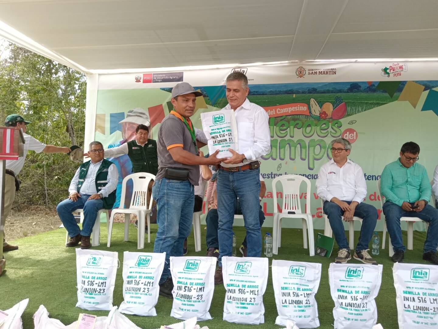 En la estación experimental El Provenir del INIA se realizó el lanzamiento de la nueva variedad de arroz La Unión 23, además realizo la premiación de cuatro representantes de Héroes del Campo. El evento contó con la presencia del MIDAGRI, el jefe nacional del IINIA, el rector de la Universidad Nacional Agraria de La Molina y el director de la DRSAM. El vice ministro Cristhinan Garay Torres, reconoció el trabajo de los investigadores, a los hombres y mujeres del campo de la región. Cuatro de cada 10 personas en San Martín se dedican a la agricultura, » soy un hombre de estadísticas» un agricultor el el Perú da alimentación a 15 peruanos» dijo.
