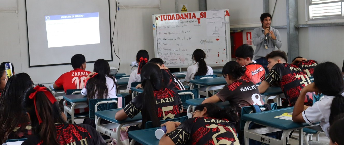 La charla estuvo a cargo del profesional de la oficina de Seguridad y Medio Ambiente, así como de Imagen Institucional de la Unidad de Negocios Bellavista y el supervisor de Oficina comercial Saposoa de Electro Oriente.