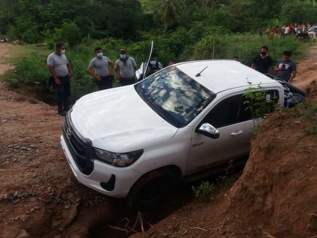 El vehículo fue ubicado despistado en la carretera que conduce a la localidad de San Antonio de Paujilzapa, en el distrito de Buenos Aires, provincia de Picota. La Policía viene investigando algunos datos proporcionados por los lugareños, que podría contribuir a la identificación y captura de los sujetos que acabaron con la vida de Ramírez Navarro.