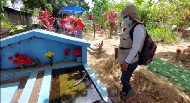 Durante la inspección en el cementerio moralino, sobre una tumba de concreto y loseta los brigadistas encontraron un charco de agua con gran cantidad de larvas de zancudos, de inmediato lo limpiaron, pero no descartan que en los próximos días pueda haber más focos infecciosos por la irresponsabilidad de muchas personas que hasta el momento no toman conciencia del daño que pueden hacer al dejar sus inservibles expuestos a las lluvias. (Hugo Anteparra)