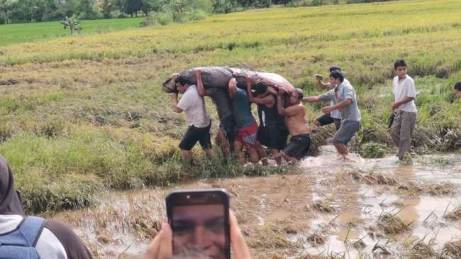 Después de varios intentos fallidos de atraparlo, el paiche fue sacado del arrozal, sin embargo, este hecho generó la atención de los lugareños, quienes sin tomar en cuenta las disposiciones sanitarias y que Rioja es una las provincias más golpeada por la pandemia se aglomeraron, incluso muchos de ellos sin mascarillas.