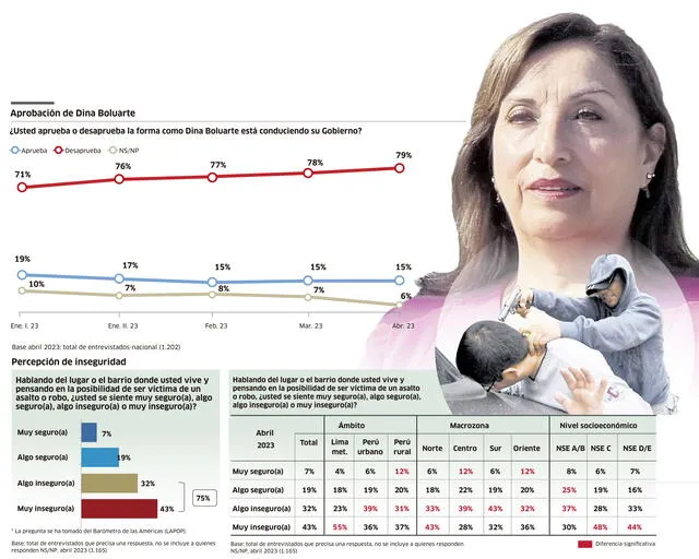 Dina Boluarte tiene 80% de desaprobación, aproximadamente, 7 de cada 10 peruanos consideran que los derechos básicos y la libertad de expresión no están protegidos en nuestro país.
