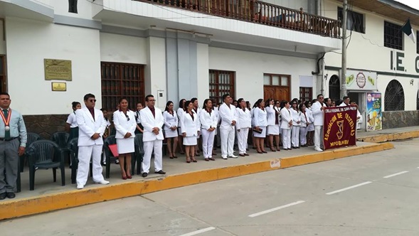 Moyobamba. Con ocasión de celebrase el 30 de agosto el día de Santa Rosa de Lima “Patrona de los Enfermeros” y el 31 de agosto el Día de los Obstetras en honor a San Ramón, ayer domingo tuvieron a su cargo la ceremonia de izamiento del Pabellón Nacional, al acto, desarrollado, en la plaza de Armas también asistieron diferentes autoridades como el acalde provincial Oswaldo Jiménez Salas.