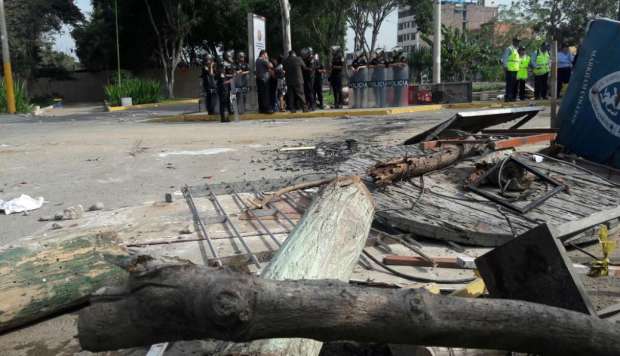 Poco después de las 6 p.m. agentes de la policía llegaron hasta el lugar y se produjo un enfrentamiento con los estudiantes que se encontraban en la zona. Se usaron bombas lacrimógenas para dispersar a los manifestantes.