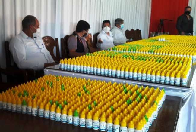 El alcalde de Moyobamba, Gastelo Huaman Chinchay en compañía de la Vice-goberadora Regional, Nohemi Águila Puerta y alcaldes de los distritos de la provincia entregaron 6 mil dosis de Invermectina para frenar el avance la pandemia en la provincia de Moyobamba.