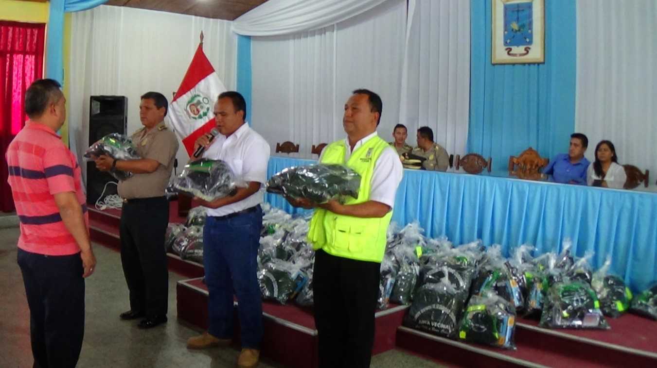 Moyobamba. Tal como se había anunciado la semana pasada, ayer domingo en los ambientes del auditorium Pedro Pascasio Noriega se llevó a cabo la ceremonia de entrega de los Kits de indumentaria a los integrantes de las 15 juntas vecinales que con el apoyo de la Policía Nacional fueron reactivadas en las últimas semanas.